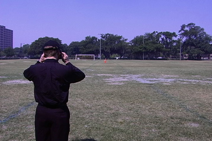 In this pic you can make out the SRV on the bottom right with an LED turned on to track it from an overhead camera. Its position is then sent to our control system and in the background screen you can make out a view of a virtual model of FC live on Google Earth where you can actually track the SRV in "real time".