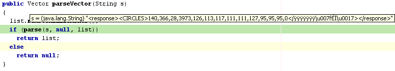 if rrAPI.getVariables("CIRCLES") is called then null is returned. it seems as your software malfunctions. if you have a look at the debugging picture, you will see that the XML closing-tag is not proper of the <CIRCLES> tag!
