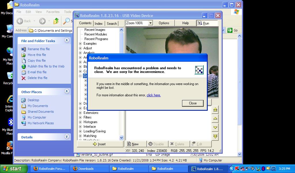 Roborealm Crash when accessing Dario Mirkovski from Macedonia, Former Yugoslav Republic [20 posts] |