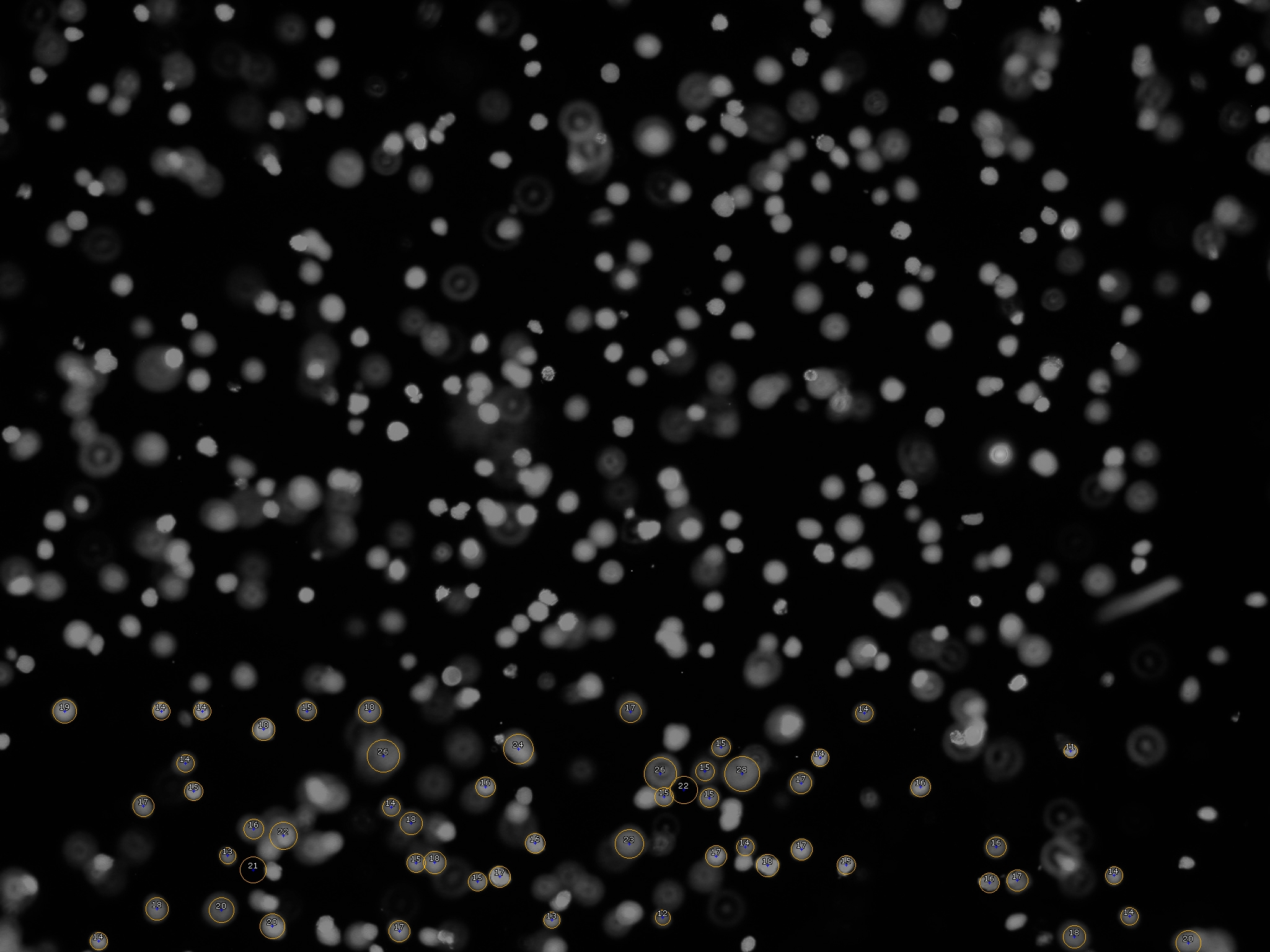 I am looking for a way to count the number and size of paint drops in a picture. I have already triad out a few things and in the pictures you can see some results. Not all the drops get measured and there are a couple that get measured that aren't even there, but whit a few adjustments and just using parts of the picture I think I can solve the those problems.