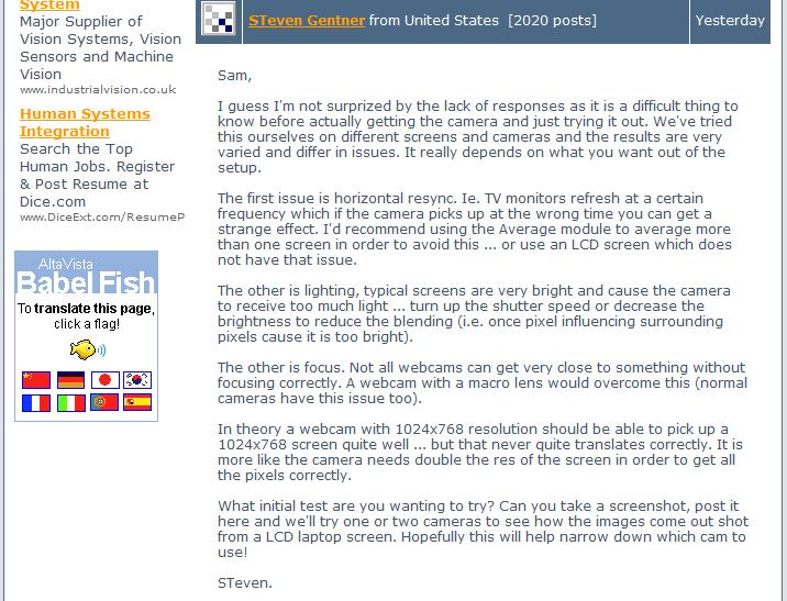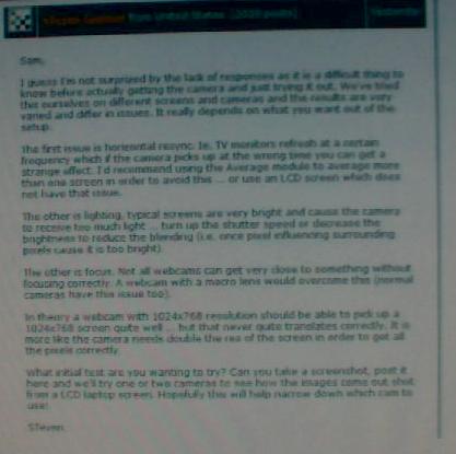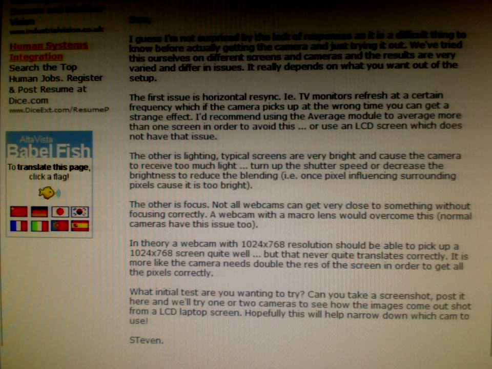 Camera that can see computer LCD monitor 8 point font SamQ from United States [15 posts] |
