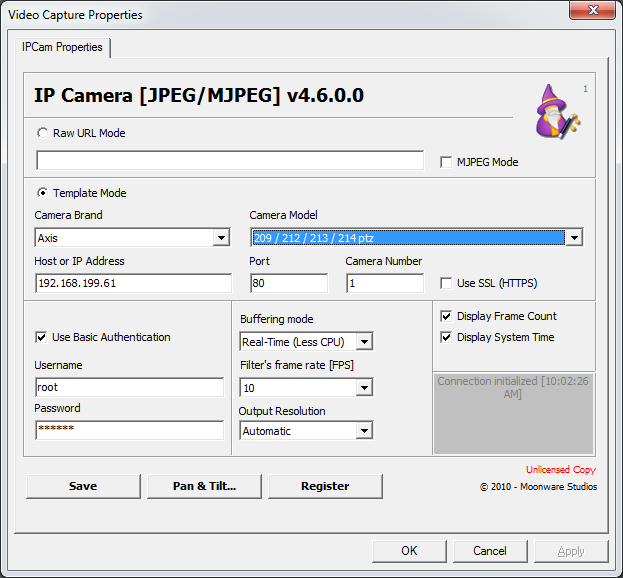 If you are interested in getting better control over those cameras and can place them online over the internet we can create a module specific to these cameras that would also allow automatic pan and tilt. (This just done for the foscam). If this is of interest let us know!