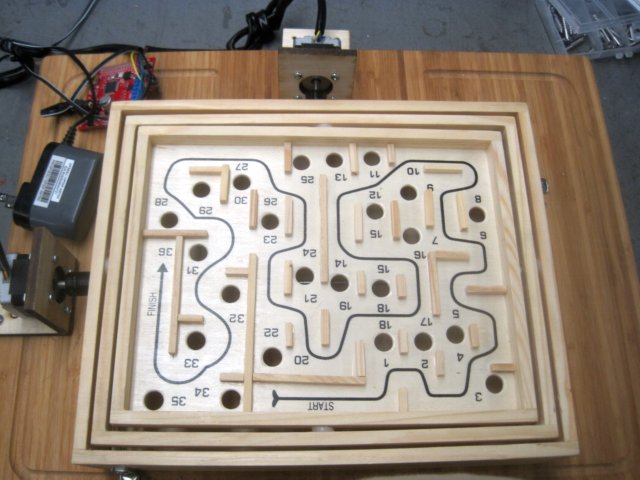 I was inspired by the maze solver to build one of my own. But I would like to do it using two tools so that I could gain experience in both namely RoboRealm and OpenCV. I have finished constructing the maze but I dont know how to do the image processing part. I started with opencv as I have more experience in it than roborealm. I am able to track the ball as well as the trajectory shown in the maze. But I do not know how to use the track information to move the ball. Whatever I try to do, my ball just rolls back and forth. I am trying to control the ball at the same place. I want to implement it in robo realm as well. I have no clue how to proceed. I am looking forward to hear your thoughts