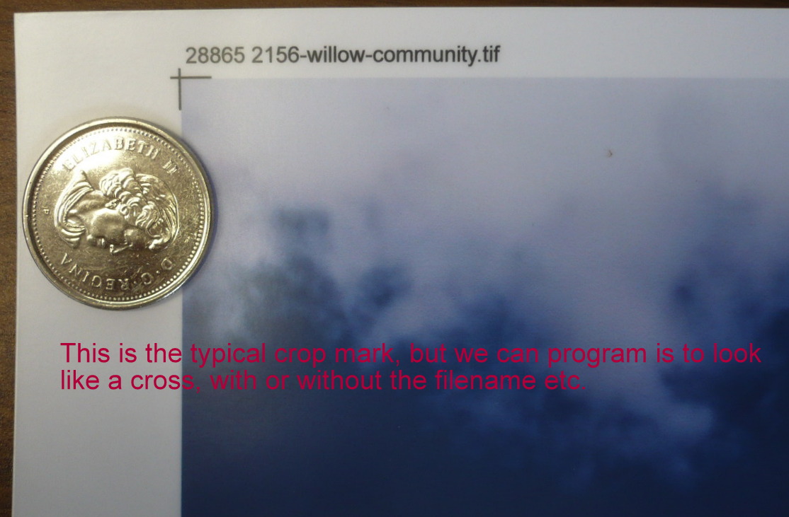 on the other hand, do you think you software is so smart to the point it can recognize the poster crop mark and do the cut without this double bar, my RIP software can generate the crop mark like the cross or a L on the corners of the print. I can program it any size I want. if this is the case this design will be a lot more powerful, since most RIP software can generate the crop mark but not many can do the fotoba mark (the 2 double lines).