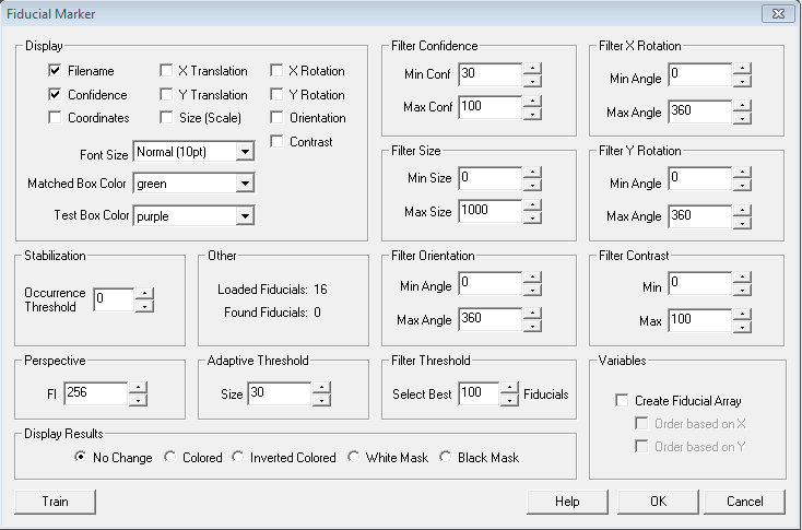 I am using RoboRealm version 2.46.38 and I am pretty sure I trained the images from the standard 16 images from "C:\Program Files\RoboRealm\Fiducials\"