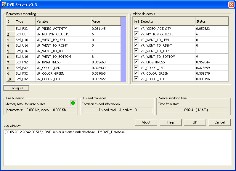 - After the RoboRealm installation you should install DVR_Client_Install.exe package. When installation is complete you should set the database directory path in the client program (chose a "Service/Configuration/Camera #1 database path"). Now the DVR Client is ready to work.