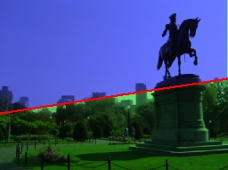 The Skyline module analyses the current image and proposes where the skyline or horizon might be. It does this task by minimizing the variance between two halves of the image to the point that a settled state is achieved. This essentially breaks the image into two parts. As most skies are of very different texture than the ground this is an effective technique of determining the split.For those RC plane enthusiasts it should be noted that an image in one second may contain a horizon but in the next all ground or all sky. This renders the image division useless unless the Model is provided with several frames from previous "good" horizons. Thus, you should start off with the horizon in view which will allow the model to build up a sampling of what is sky and what is ground. When only sky or only ground is suddenly in view the module will indicate this using situation in the SKYLINE_VIEW variable.