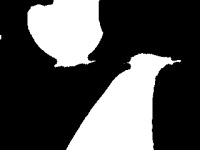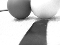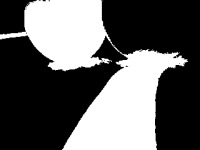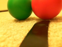 Then we threshold the image into black and white parts using the Auto Threshold module. Note that while the red ball is gone the green one is still present, but our black line is aswell so that's what we want.