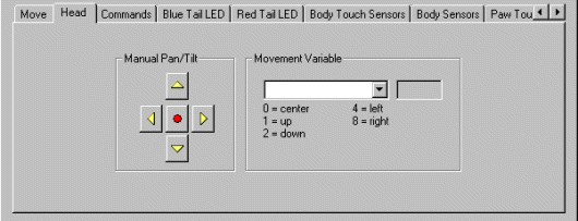 8. Manual Pan/Tilt (Head Tab) - Similar to the move buttons the head pan and tilt can be moved using the provided buttons.